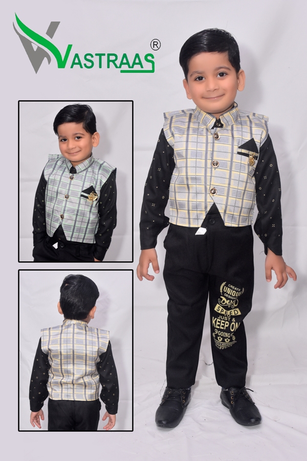 Vastraas Kids 3 Piece Ethnic Wear Baba Suit Set With Shirt Pant with Blended Waistcoat for Boys(Multicolor, Multiple Size)